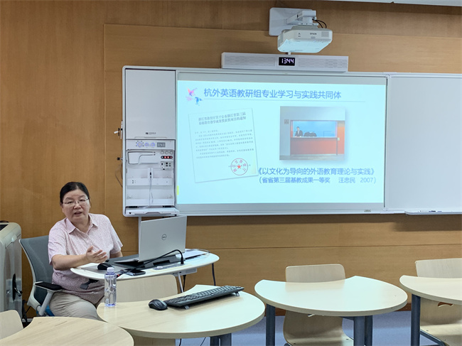 资深教师代表余泓遐和周蕾丽老师倾情分享了她们的一线教学工作经验。余泓遐老师对课程的设计和实施给出了详实建议。她通过分析具体教学案例,对“目标导向”的学科知识框架构建方法、“素养为本”的教学设计思路、以及以学生为中心的“教-学-评”一体化实践落实方法进行了示范和指导,为即将踏上教学岗位的新教师们提供了宝贵参考范例。周蕾丽老师则以杭外校园百年古木的成长为喻,鼓励教师应重视生涯规划,并结合自身经历指出了从“合格教师”到“魅力教师”的发展五部曲。最后,她还从教育理念、教师形象、师生关系、教学反思和教科研等视角对新教师们提出了多维建议。