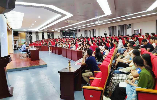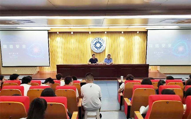 应警官作为从业多年、有着丰富经验的警察,他从消防、财产、人身安全等方面提醒同学们保持头脑清醒,主动远离危险。他讲到了诈骗在全社会的危害性,特别是针对同学义气和侥幸心理,导致QQ账号被盗、财产流失、人身受到攻击等不良后果,提醒我们要擦亮双眼,提高警惕,遇到不确定的事情要求证。应警官着重强调了网络安全问题。无论是传播虚假信息、谣言、辱骂他人,还是散布计算机病毒致线路瘫痪、扰乱公共秩序等,都要负相应的责任,网络不是法外之地。他通过列举实例,给我们安全警示。