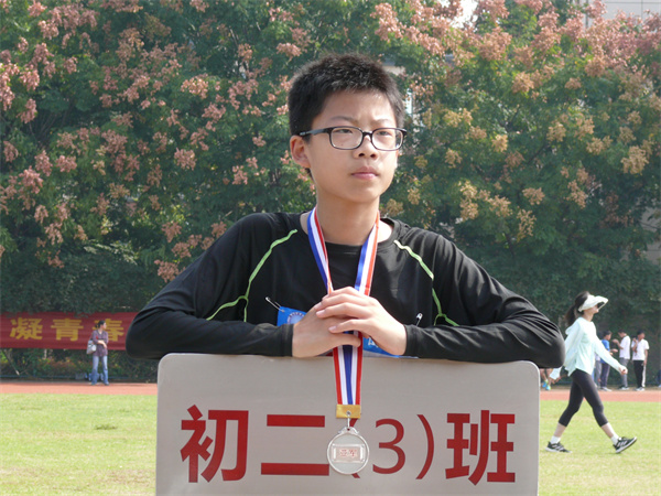 很荣幸能荣获此次运动会“奉献之星”的称号。运动会是最能表现团体意志与运动精神的集体活动,在运动会中我担任了现场卫生清理的工作,与同学们协作维持看台环境,还与其他班级互帮互助轮流清扫看台。在遇到突如其来的大雨时,同学们团结一致买来野餐垫为大家提供干净的座位,正是这样的团结才促成了赛场上的好成绩。在同学们的加油声中许多同学都取得了奖牌与好成绩,我也在1500米项目中荣获铜牌。