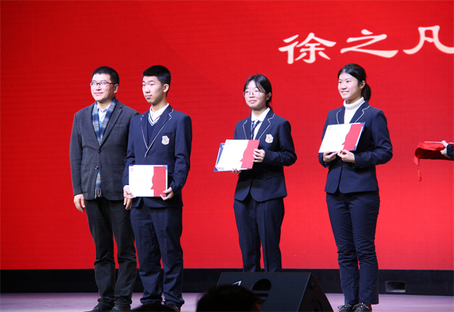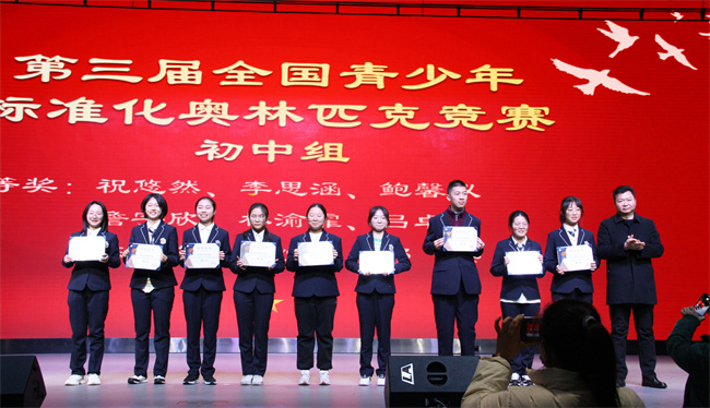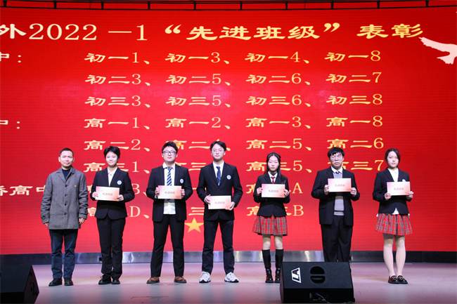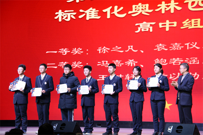 在第一篇章中,同学们通过观看视频回顾了上学期取得的佳绩。之后,学校对标准化竞赛全国赛、国际赛获奖者及指导老师,先进班级进行表彰。