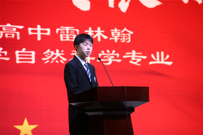 已被剑桥大学预录取的雷林翰同学作为优秀学生代表发言。他认为,热爱对于学科研究而言是非常重要的。学习探索总有遇到困难的时候,但要坚信,收获的一切终将为自己的努力画上圆满的句号。他呼吁同学们要运用自己的思考形成对学习的独特见解,愿学术自由、热忱之风永远吹拂杭外。