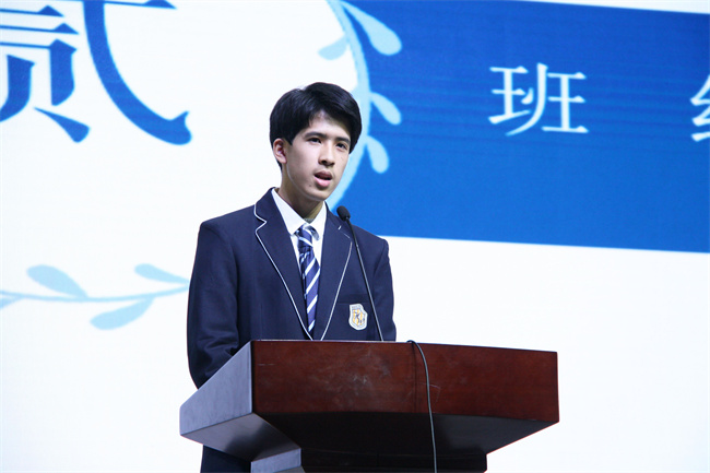 高一年级顾荣喆同学作为先进班级代表进行班级管理经验分享。他从班级风貌、班级管理、班级活动三个方面进行了介绍。在班级管理的过程中,他体会到了纪律的重要性,制定了严谨科学的班规。同时包容造就的信任能够使班级变得更加团结。他希望在新的学期,各个班级都能收获成长。