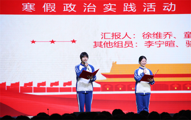 在校经典诵读团铿锵有力的朗诵声中,开学典礼迎来了第二篇章。通过视频,同学们欣赏了杭外学子丰富多彩的寒假生活。