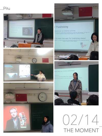 英语的两个实践作业分别为设计一项公益活动和推荐一部科幻题材小说或者电影。首先进行的是公益活动设计的展示。带着一颗善良而有爱的心,大家针对不同的弱势群体和社会问题设计出了详细而有新意的活动方案——环保大主题下,有对流浪动物的收容关爱、对濒危物种的拯救和保护,对水资源的合理使用和节约;人文关怀主题下,有对独居老人的温暖帮助、对失学儿童的爱心捐赠,对残疾人就业问题的思考;同时大家还把目光投向了身边的小问题和国家、甚至全球的大事件,比如解决宿舍热水不稳定,关注乌克兰战区的儿童和平民,以及如何理性面对网暴等。同学们的活动设计不仅有想法,更有细致的执行方案、宣传措施以及对可能出现的突发问题的预案。虽然大家想法各异,但相同的是那份对社会对国家对他人的关心和责任,是正在成长中的孩子们主人翁意识和态度的觉醒、深化。