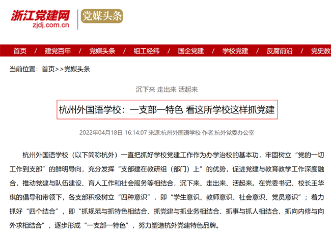 “一支部一特色”党建品牌获浙江党建网关注报道