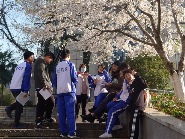 师生在樱花树下开展导师制交流活动