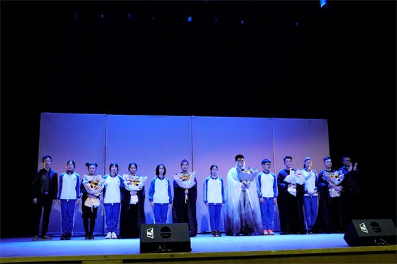 在剧末,身着白衣的孔子在周游列国十几年后重归故里,静静地站在时代风潮中,回顾自己的一生。全剧以一句掷地有声的“克己复礼,天下归仁;大道之行,天下大同”结尾。学生代表向演员们献上花束,对浙江话剧团的所有工作人员表示感谢。这次演出不仅让我们对孔子这位“孤独的圣人”有了更丰富多元的了解,也让我们进一步体味了中华优秀传统文化的别样风采。