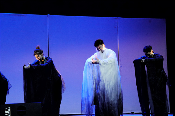 表演一开始,滑稽的引入便吸引了我。接着,华丽的灯光效果带我们进入了古老年代。台上演员生动地演绎了一个又一个广为人知的故事:“有教无类”、“两小儿辩日”……同时,形象地展现了孔子的一生。孔子驾车远行的那一段情节,让我难以忘怀。一个有抱负、有理想的孔子,在与命运抗争的岁月中,体现出了一种史诗般的悲壮,让我长叹于个体力量的渺小与伟大。或许我们都无法改变世界,但是在生命为理想燃烧的那一刻,天空便会被点亮。