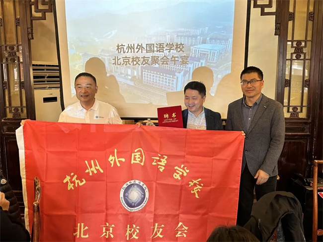 3月19日,王华琪校长出席北京校友会成立仪式,向北京校友会会长、1997届校友钱江涛授旗并颁发聘书。杭州校友总会会长董佳尉致辞,并代表总会向北京校友会成立表示祝贺。