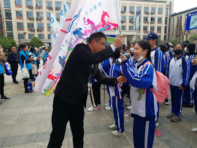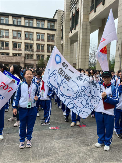4月6日早晨,初中三个年级的同学排好整齐有序的队伍,等待出发。在简短的动员讲话后,王华琪校长向各班授旗,并希望同学们在研学活动中放松身心,学有所获。各班旗帜的设计都独具匠心,别出心裁。