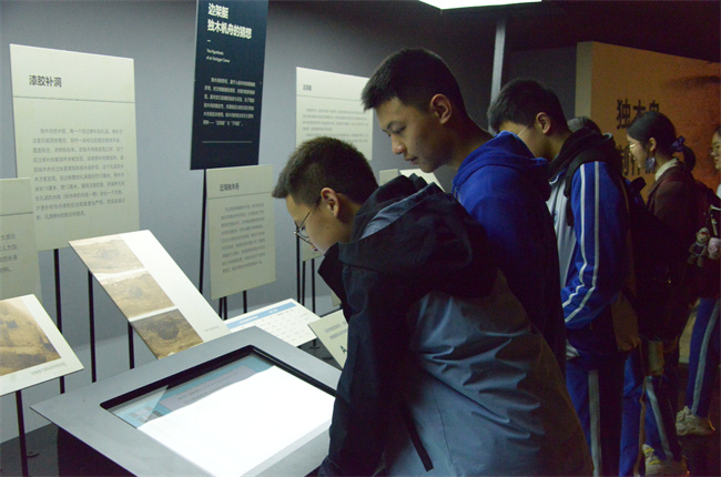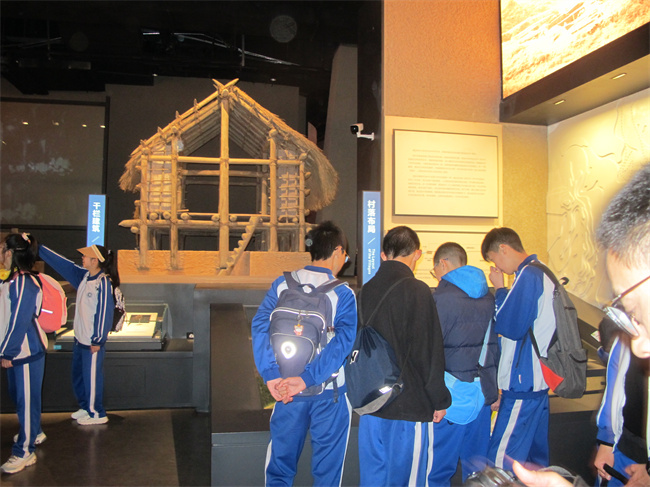 跨湖桥博物馆内灯光幽幽,携着橘黄的灯火,我们仿佛置身历史长河,“萧山八千年”的大字更是使人心潮澎湃。中华文化如此历史悠久,如此博大精深。学生们顺着一件件展品漫步,或出声感叹,或默默记录。