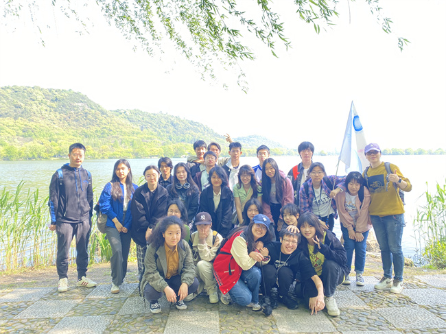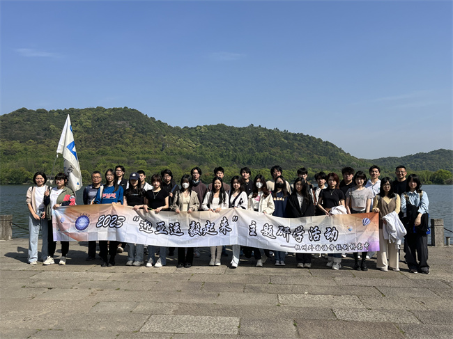 在湘湖,全体师生共同完成了约为1小时的绕湖毅行。沿着环湖的石道步行,师生们共同欣赏碧水蓝天的江南美景。2023年对于杭州来说,必将是不同凡响的一年。身为杭州人,此次毅行活动使大家感受到了日渐浓厚的亚运氛围。沿湖毅行后,每个人心中都更加期待金秋九月如约而至的亚运会。