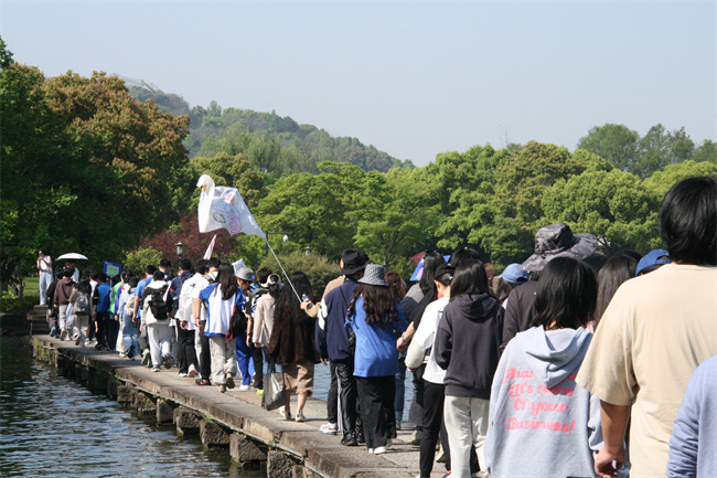 疫情过后,久违的春天来了,离亚运会还有166天。学校组织我们来到湘湖毅行,伴着波光粼粼和温暖的春风,我们从最近考试当中的压力释放出来,在大自然里流连忘返。