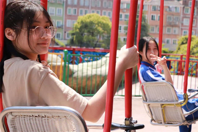 所有学生排成一条长队,在湘湖边上散步,欢声笑语,杨柳拂岸,湘湖也因为我们的到来而散发出更多的生气。同学们互帮互助,在狭窄没有栏杆的桥上互相搀扶着,契合了“心心相融”的亚运主题。在杭州乐园,大家完全放松身心,在过山车上体会了肾上腺素飙升的快乐,在激流勇进里一起被淋得满身是水,在飞椅上感受凌空飞起,就这样度过了一个疯狂而美好的一天。