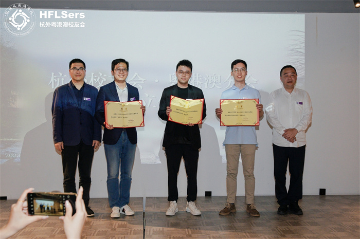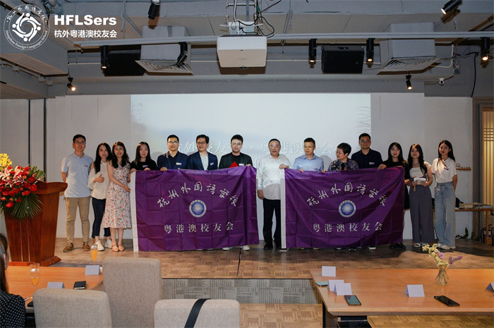 4月15日晚,王华琪校长出席粤港澳校友会成立仪式,向粤港澳校友会会长、2010届校友杜冰和2001届校友王漓,秘书长2013届校友李景贤授旗并颁发证书。杭州校友总会会长董佳尉致辞祝贺。