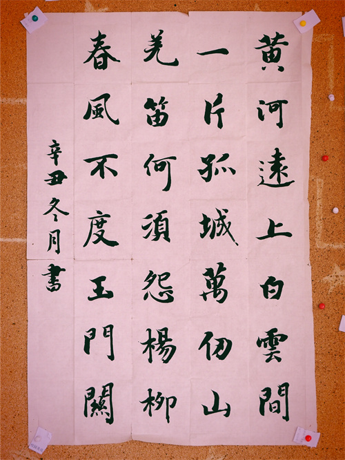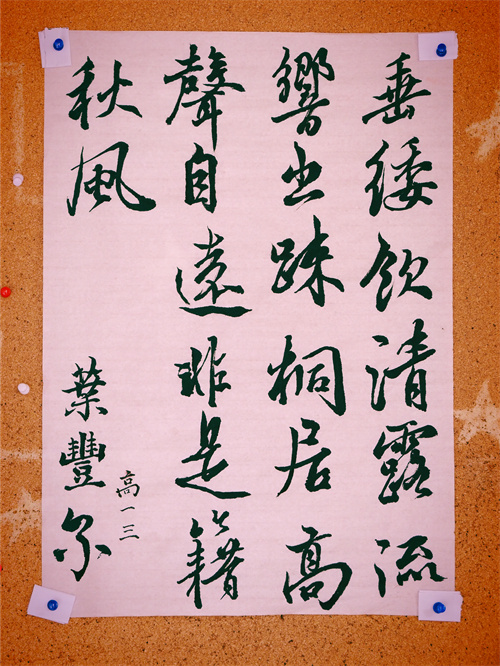 高一年级的同学们在文化节来临之际用书法作品装点起了年级展板。