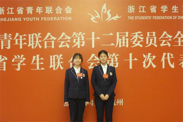 浙江省学生联合会第十次代表大会于4.26-4.28在杭召开。我校学生会两位代表,高二2班袁嘉仪、初三1班李宁暄参加本次会议。