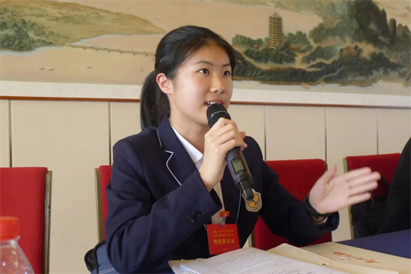 在其后的的小组讨论环节中,各代表充分分享并讨论了自己对于上午会议文件及精神的见解与感悟。我校学生袁嘉仪也有感而发,在讨论现场阐述了自己对于“我在窗口写青春”这一总动员总号令的精彩理解:
