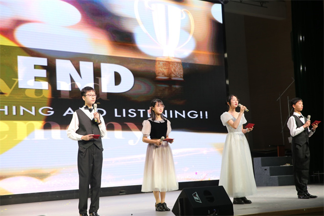 与蓬勃的创造力。这既是属于同学们的机会与挑战,也是对这两年语言学习的展示与汇报。正如本届外文节主题“Hand in hand,Shape the future!”,初二年级同学在合作中进取,在舞台上迸发出独一无二的光彩!