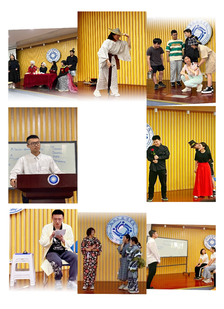 两个日语班的同学们分别带来了《辉夜姬》和《雪女》两个精彩表演节目,在展现古老传说魅力的同时辅以极具艺术特色的表现手法,令同学们忍俊不禁,拍手叫好。法语班同学们则选择了《无病呻吟》《沃尔塔庄园历险记》两部作品,分别富有奇幻乐趣与强大的喜剧精神内核,寓教于乐,收获了在场观众的一致好评。西班牙语班的同学们则带来了《全员恶人》与《卡门》,带大家完成了古典世界与童话世界的时空穿梭,带来很好的观赏体验。德语班则合作完成了戏剧版《浪潮》的表演,提醒我们时时以史为鉴,极富教育意义。