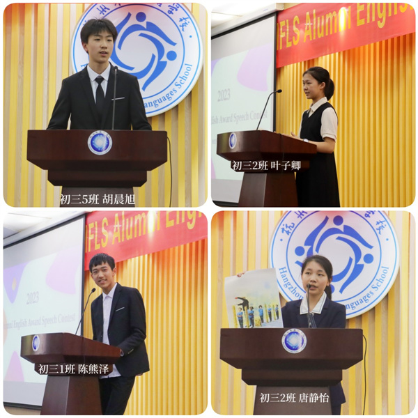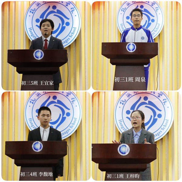 作为杭外外文节的重头戏,初三年级“校友杯”英语演讲比赛于5月19日下午在二号楼一楼报告厅隆重举行。全体初三同学和英语老师到现场观战,为参赛选手加油鼓劲。初二全体同学则在教室通过观看视频直播的方式直观感受这场重量级的比赛。比赛邀请了初二年级所有英语老师以及Kristina和Steve两位外教作为评委及点评嘉宾。同时,作为历年惯例,今年仍然邀请了杭外的校友代表董佳尉先生作为特别嘉宾出席。