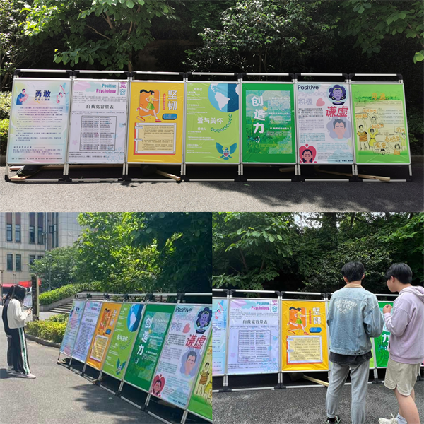 在心理杨慧慧老师的带领和学校心理健康研修小组陈燕华、赵晶、郑伟、王金震、朱灿老师的支持下,全体高中心理委员们开展了积极行动,分成“思维与创造”“坚韧勇敢”“谦逊宽容”“爱与关怀”“人际合作”五个积极心理项目小组,并在老师的指导下围绕这五个主题查找资料,整合文稿,图文对照精心设计了心理海报,在校园里进行了展示。希望通过这样的方式向师生们普及积极心理健康知识,传播培养积极心态的意识,不少同学驻足观赏了海报。