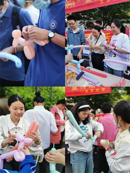 “坚毅与勇敢”组的同学负责的项目是用气球做出一个小狗,因为气球很容易炸掉,所以每一步都需要勇气才能做下去。在强大心理、克服恐惧的同时,同学们也锻炼了自己的动手能力及创造力——大家做出的小狗各不相同,各具特色。虽然有同学做炸了气球,但是他们都选择克服恐惧,再来一遍,做出了更可爱的小狗,这令人联想到杨紫琼女士近日在哈佛法学院所作演讲中的一句话“Learning how to fall teaches you how to land, and learning how to land gives you the courage to jump higher.”让我们强大心理,克服恐惧,勇敢地踏向未来!在迎接了一波又一波的同学游园打卡后,活动也接近了尾声,同学们衷心希望这样有趣又有意义的活动能够更多地出现在杭外这个开放的校园之中。