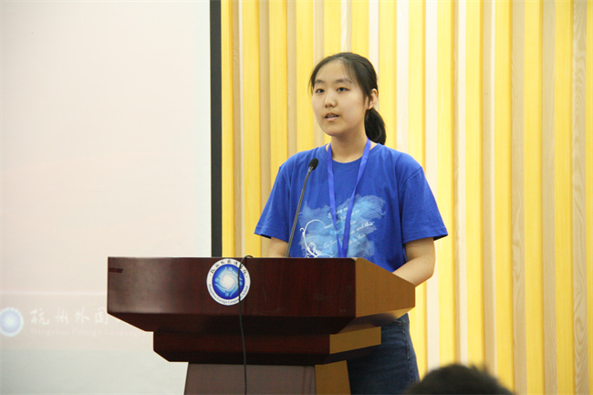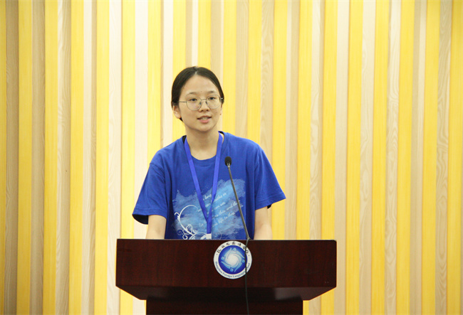 暑期课堂学生代表路隽怡同学发表感言。她谈到自己在本次暑期课堂中的巨大收获与对语言学习的热忱之心,并表示将和同学们一起做新时代的青年,胸怀家国,放眼世界。