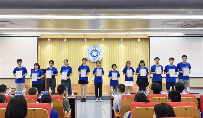 7月12日,北京大学优秀中学生暑期课堂(外语)闭营式在杭外举行。北京大学外国语学院英语系主任纳海、西葡意语系主任范晔,杭州外国语学校党委书记、校长王华琪,副校长李力,校纪委书记李甫贵等出席闭营仪式。