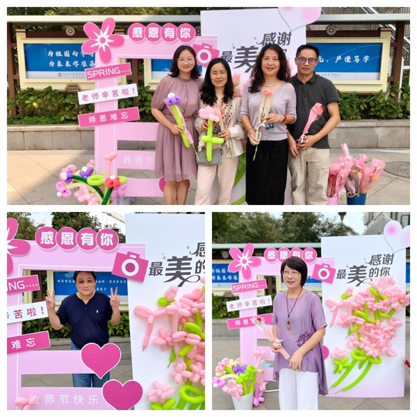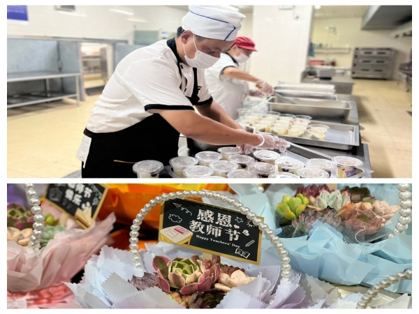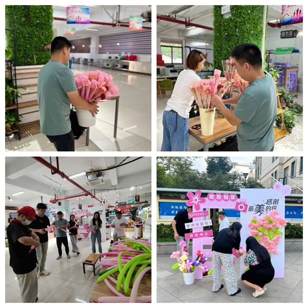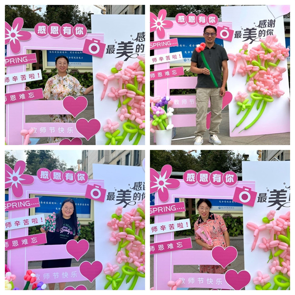 你开启大梦想,我们守护小确幸。9月8日,后勤超市准备了教师节最强氛围组,提前设计制作,连夜搭建拍照布景,准备小道具供师生打卡拍照。予人玫瑰,手有余香,还有一个惊喜环节,后勤超市为教职工送上最美花束,拍照打卡留下最美瞬间。