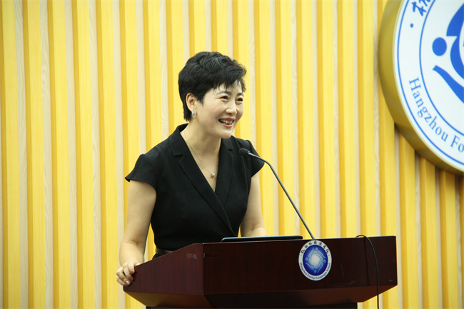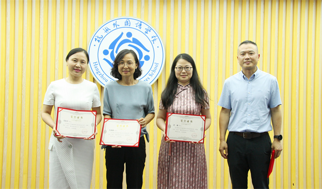 外文组张海漪老师代表受表彰教职工发言。张老师满怀深情地回顾了自己教学生涯的成长经历,感恩杭外的扶持和栽培,让她有了满满的成就感和归属感。她鼓励老师们在杭外精彩工作,精彩生活,并祝愿大家书写更好的自己,成就最美的杭外。