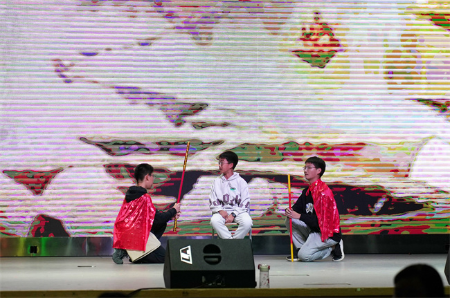 每一次错音又重来,每一次忘词又继续,似乎是落入了西游之网。每一个音符崩裂,每一滴汗水落下,都如漾一片浓厚香醇如佳酿般的小小涟漪……眼前仿佛又重现排练时的点点滴滴。我的同伴们,你们重现古典风华,让人梦回大唐西域,跟随唐僧师徒降各路妖魔。作为导演,我感谢你们成就了我初中生涯的第一幕戏,叩响了戏剧的大门,给大家呈现了一出精彩纷呈的“大话西游”。(初一7班导演 何欣阳)
