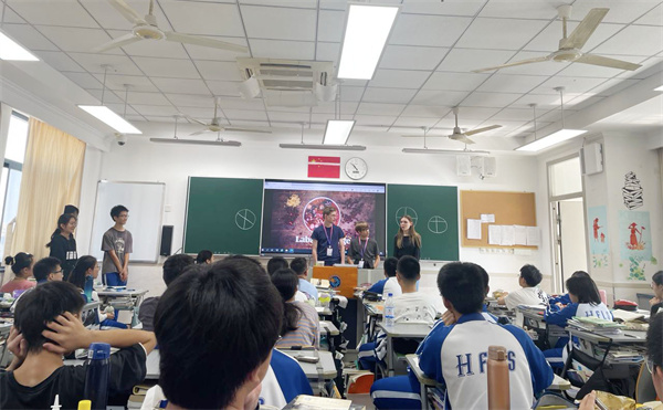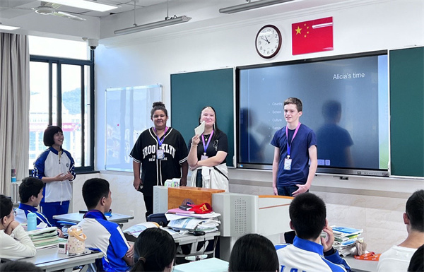 课上,德国的同学们介绍了他们的国家、所在城市,校园生活、课程设置,节日及传统文化,初三7班的同学们也介绍了相关内容。