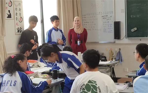 10月23日,初三年级的英文课堂迎来了德国阿尼姆学校的师生们。
