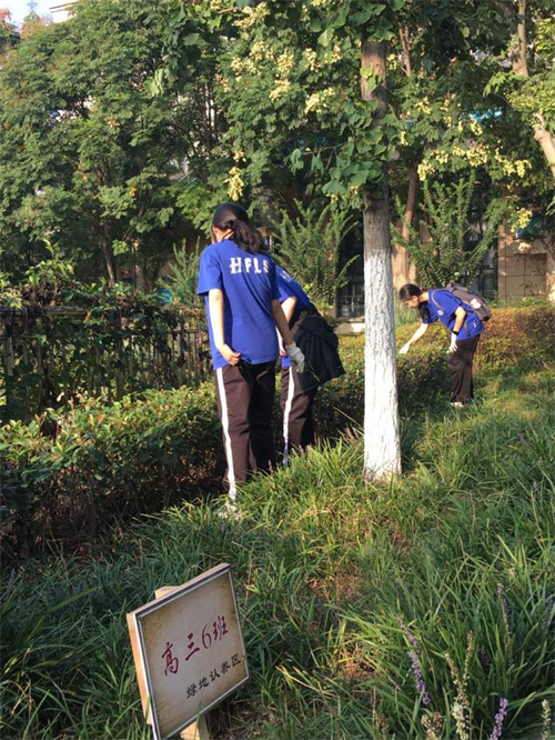 10月23日,在班主任刘凌老师和劳动委员的组织下,高三(7)班全体同学来到校园西门专属包干区开展拔草除杂活动。