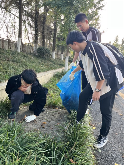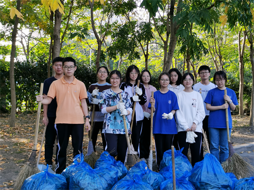 10月30日下午,艳阳高照,高三(9)班APU的同学们在班主任鲁红老师的带领下前往百草园附近包干区进行户外劳动。