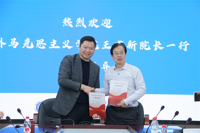 11月23日,浙江外国语学院马克思主义学院院长王建新、院党总支书记毛立峰、副院长方浩及学院教师一行莅临我校。
