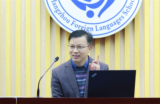 吴书记结合杭外毕业学生的特点、在校期间的成长和毕业后的发展情况,向家长们阐述了杭外的育人理念。吴书记引用蔡元培先生的一句名言“教育者,非为已往,非为现在,而专为将来”,希望家长们要更长远地来看待孩子们的教育和成长,要培养孩子们终身学习的习惯和能力。同时,他还就家长们普遍关心的“7选3”、高考三位一体、强基等升学的相关政策进行了解读,对教学安排进行了说明。