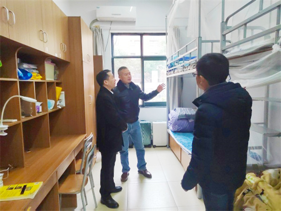陈仁坚一行深入学生食堂、宿舍、图书馆这些重点区域,检查宿舍设施、消防安全设施、食品安全管理等情况。他重点对学生宿舍区消防安全情况进行检查,现场指出可能存在的安全隐患,提出改进意见。消防安全关乎每位师生的生命安全,师生的安危关乎每个家庭的幸福安宁、关乎全省教育高质量发展需求,做好学校消防安全工作责任重大、任务艰巨。陈厅长对我校重视安全工作、严格消防安全管理、认真自查和及时整改的做法给予了充分肯定,鼓励我校不断向兄弟单位学习借鉴消防安全工作先进经验,进一步做好消防安全工作。