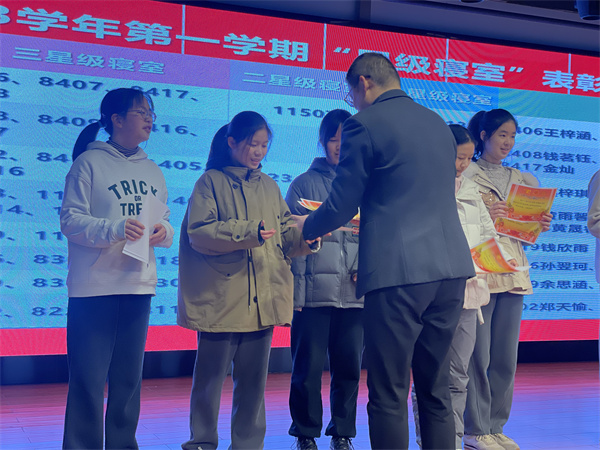 始业教育上,首先对上学期获得“星级寝室”、“每月一星”及“未来之城”科技设计项目获奖的同学们进行了表彰。获奖同学以他们的青春活力和积极向上的精神风貌,为大家展示了榜样的力量。