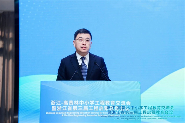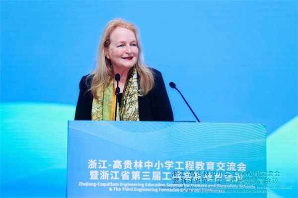 浙江省教育厅副厅长舒培冬在会上致辞。他表示,浙江是文化大省、教育强省,非常重视国际交流,一直以来保持与加拿大高贵林市的教育合作。随着STEM教育和工程教育在学生创新性培养上的作用日益凸显,双方的合作与交流也在不断深化。浙江已经在工程教育方面开展了系列探索和实践,在实施路径和课程设置上积累了一些成果,但在教育理念、教学方法以及教学资源开发等方面仍有不足。他希望借助此次活动,实现两地经验共享、互学互鉴,推动浙江教育高质量发展。