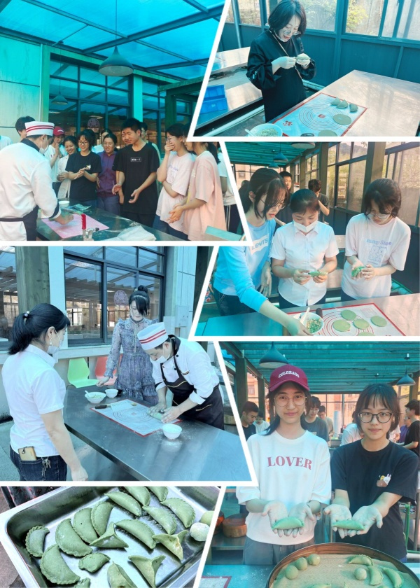 青团作为非常有代表性地清明节食物,也是南方地区的时令味道,江南青团的诞生可追溯到2000多年前的春秋时期。青团是春天的腮红,宛如绿色光谱,画出一道道和而不同的无边春色。后勤公司于4月2日,分别针对教工和学生开展两场制作青团体验活动。餐饮部准备好艾草米粉团,炒制好肉末咸菜笋丁馅、自制黑芝麻馅、豆沙馅和各种制作工具,由食堂资深大厨和面点师现场执教,教会师生从无到有制作出一个个形状精美、口味各异的青团,制作完成后,餐饮部马上上锅蒸熟,让大家品尝到最新鲜的劳动成果,别有一番风味。通过劳动体验,师生学习到了清明团制作技巧,体会到动手的快乐,切身体验到中华传统文化的独特魅力。