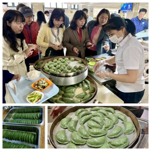 4月3日,清明长假前一天,教工餐厅团队早上制作四百余个青团,共三个口味可供选择,香干马兰头、雪菜笋丁和豆沙,请教工免费品尝一口新鲜春滋味,用味蕾将春天融进心里。