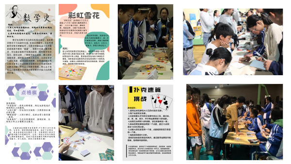本次数学游园活动同学们期盼已久。活动包含24点、数字华容道、点格棋、魔方、数独、一笔画、彩虹雪花、五子棋、智力解环、扑克速算、数学史、数学趣题、推理问题等一系列数学益智小游戏。
