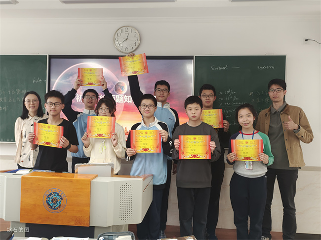 然而,比赛还没结束,谁都无法掉以轻心。越挫越勇是我们杭外人的精神,永不放弃是我们杭外人的传统。在紧接着开始的第二轮竞赛中,其余班级并没有受到第一轮落后的影响,奋起直追,迎头赶上。在你追我赶中,将现场的气氛推向高潮。五班代表团在竞争最为激烈的抢答环节中,答题又快又准,迎来惊天大逆转,最终获得了全场最高分。