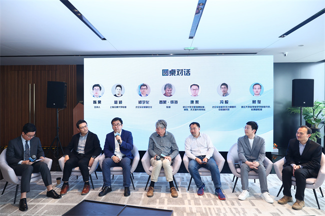短暂休息后,怀特教授与相关领域的专家、教授圆桌对话,共同探讨人工智能和科学发展的热点问题。谈话中,各位专家、教授热烈交流人工智能辅助科学研究的前景:通过大胆猜测、小心求证,智能计算和天文学能够实现融合发展,从而进一步推动科学发现和技术创新。