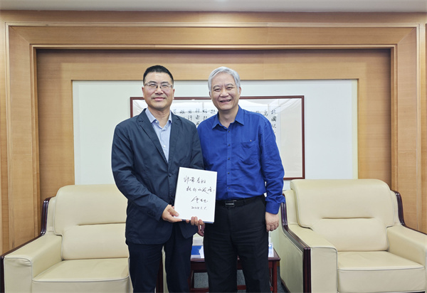 讲座开始前,党委书记、校长王华琪与唐本忠院士亲切交谈。王校长向唐院士介绍了杭外办学历史及取得的教育教学成果,尤其是学校在拔尖创新人才培养方面的探索与实践。唐院士对杭外取得的优异成绩表示赞赏,并欣然为学校60周年校庆题词——“非常看好杭外的发展”。
