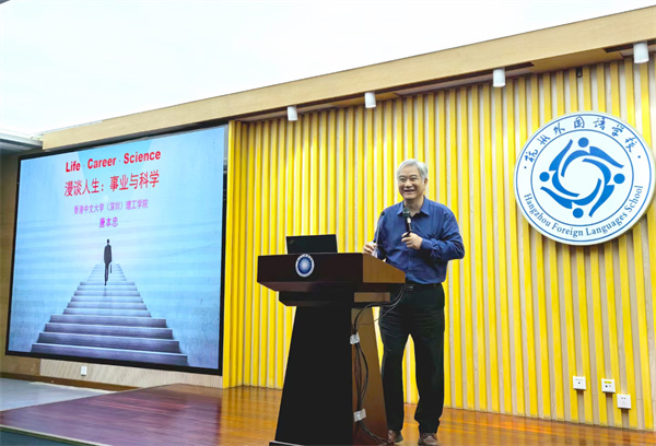 5月5日,中国科学院院士、香港中文大学教授唐本忠走进杭外“和山大讲堂”,开设“漫谈人生——事业和科学”的主题讲座。