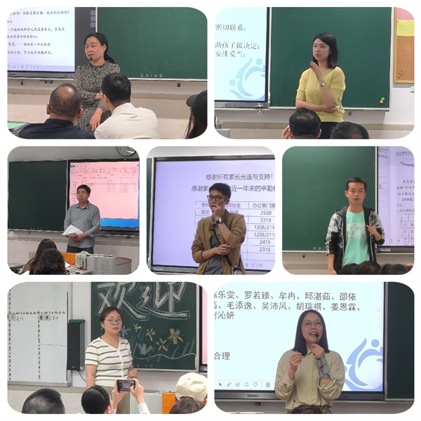 任课教师们根据任教班级实际情况,将学生本学期前半期的思想、学习情况跟家长作汇报,也提出了下半学期的要求和注意事项。家长们专心聆听,认真记录。有的班级邀请了家长代表发言,有的班级布置了学生展示,还有的班级安排师生在门口摆摊接受咨询。