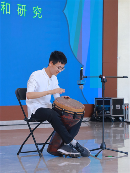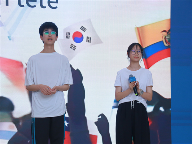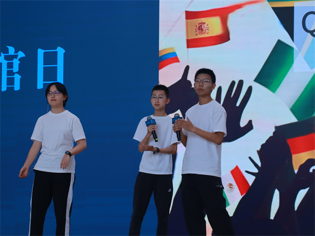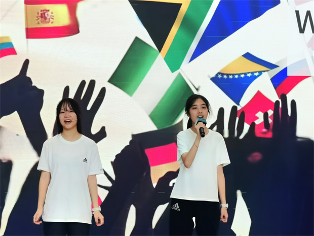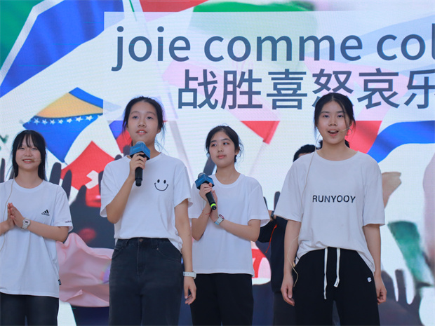 下午2点,活动准时开始。在一阵激昂的非洲鼓伴奏下,同学们信步走上舞台,自信歌唱,展现风采。法语班的同学用法语传递了激情与热爱;德语班的同学用歌声传递出对自由的向往;日语班同学彼此击掌,在舞台上演绎着热爱与感动;西班牙语班同学的表演将整场演出推向了高潮。最后,歌声和外语交融、舞蹈与旗帜相称、鼓点与节奏合拍,表演圆满结束,台下响起了阵阵热烈的掌声。